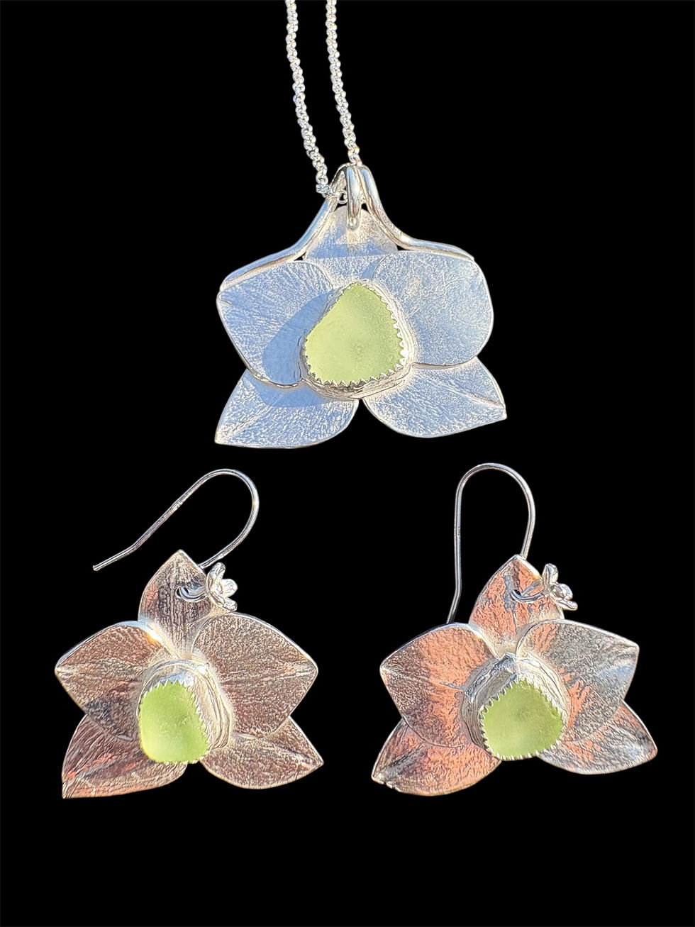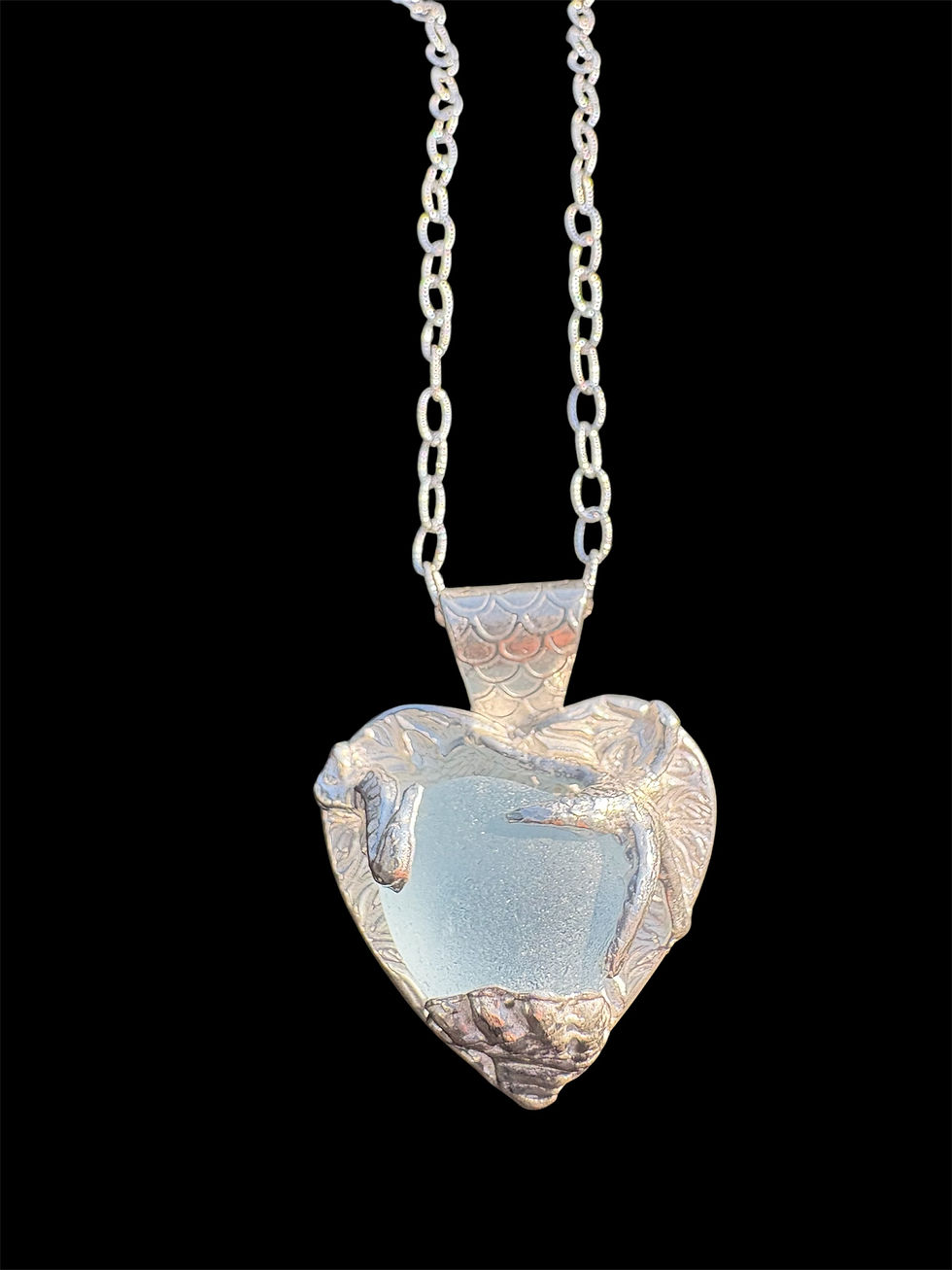 My sea glass art adventure all began with my love for running, animals and the ocean. While running and beach combing along the Jersey shore, I had started collecting sea glass and was fascinated by its beauty and origins. Initially, I crafted wire-wrapped sea glass pendants to support a local horse rescue, but my artistic expression flourished with metal smithing and the Japanese art of metal clay. Today, I handcraft unique wearable art using 99.9% pure fine silver and ocean tumbled sea glass that I have collected locally and in my travels, inspired by the breathtaking beauty of the ocean and coastal life. Discover my creations and the stories they embody!